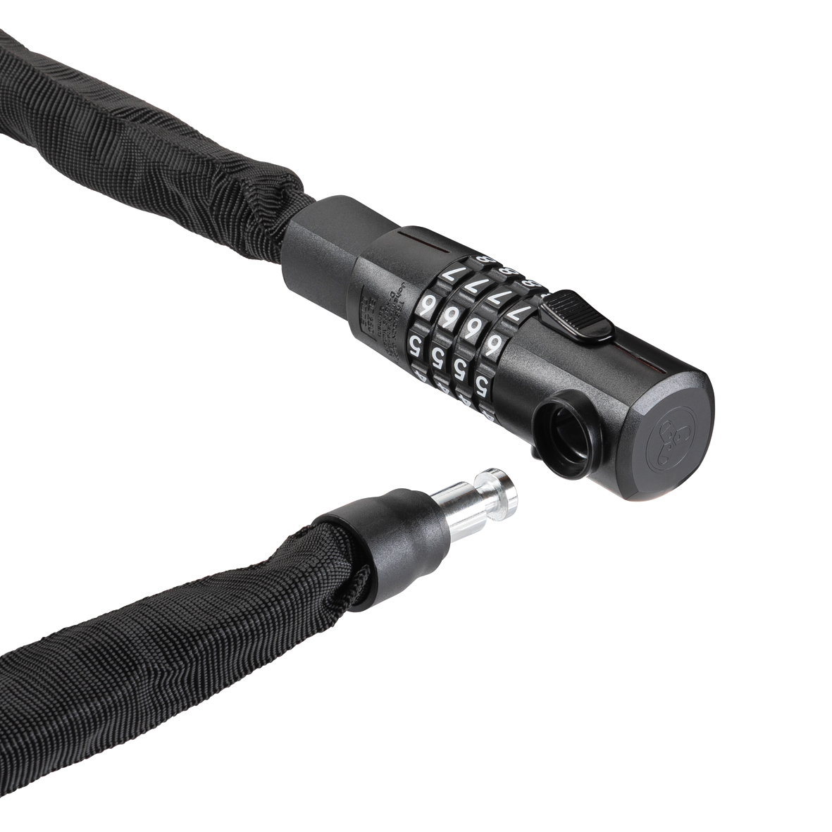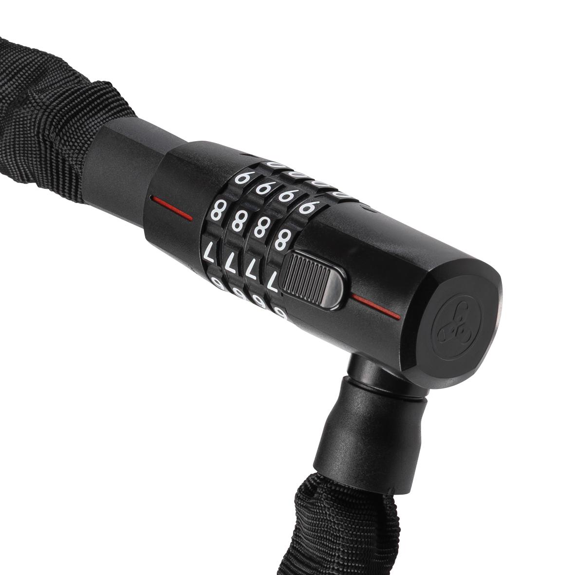 Das BC 280 Code im neuen TRELOCK-Design ist, wie alle TRELOCK-Kettenschlösser, flexibel und einfach in der Anwendung. Das Anschließen des Fahrrads an einen festen Gegenstand gelingt spielend einfach. Der 4-stellige Code lässt sich einfach und individuell einstellen. Die 5 mm starken Kettenglieder sind aus gehärtetem Stahl gefertigt und mit einem widerstandsfähigen Textilschlauch ummantelt.