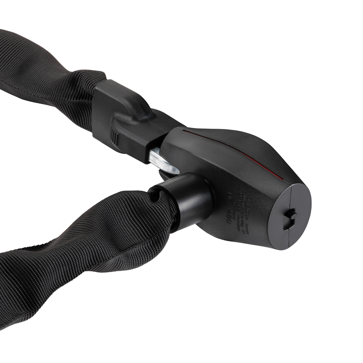 Das Kettenschloss BC 480 ist ein Allrounder unter den TRELOCK-Kettenschlössern: mit 110 cm Länge bietet es genügend Schließreichweite, um das Rad oder E-Bike an ein festes Objekt anzuschließen, die 8 mm starken Kettenglieder sorgen für guten Diebstahlschutz in Relation zum Gewicht. Die flexible Kette aus gehärtetem Stahl wird durch einen widerstandsfähigen Textilschlauch geschützt. Um den besonders sicheren Scheibenzylinder vor dem Verschmutzen zu schützen, ist eine Staubschutzkappe im Schlosskopf integriert. Die beiden enthaltenen Schlüssel lassen sich bequem (mit der Schlüsselnummer) nachbestellen.