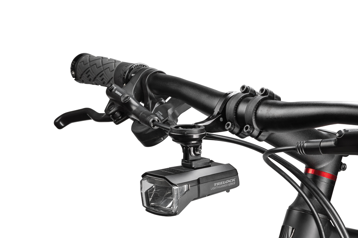 Stellt die Welt auf den Kopf: Der Scheinwerfer Lighthammer Pulse kann wahlweise auf oder unter dem Lenker montiert werden. Mit wenigen Handgriffen lässt sich die Halterung wechseln. Alternativ ist ein Garmin/GoPro-Adapter separat erhältlich.