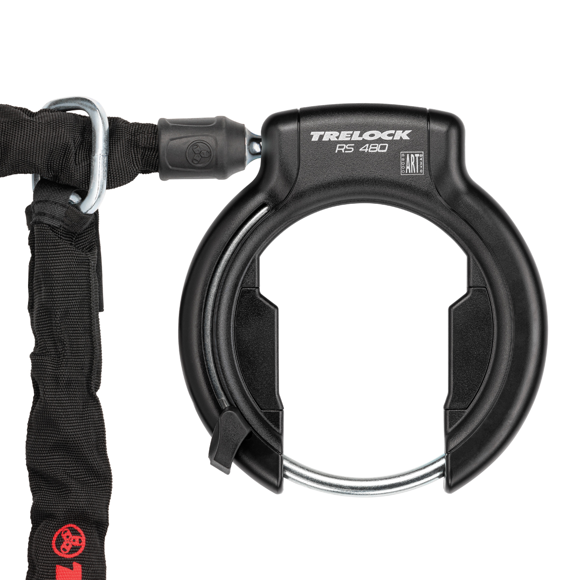 Um dem Trend zum breiten Reifen gerecht zu werden, bietet TRELOCK mit dem RS 480 XL dem Rad- und E-Bike-Fahrer ein Rahmenschlösser mit breitem Durchlauf an – genauer gesagt 75 mm. Die Gesamtgröße bleibt dabei jedoch angenehm kompakt und auch bei der Sicherheit steht das neue RS 480 XL unseren bewährten Rahmenschlössern in nichts nach. Natürlich kann die Sicherheit und die Schließreichweite mit TRELOCK-Einsteckketten erhöht werden – denn mit diesen ist es möglich das Rad oder E-Bike an einen festen Gegenstand anzuschließen! Das RS 480 XL mit einem nicht abziehbaren Schlüssel ist in den Niederlanden mit dem ART**-Siegel ausgezeichnet worden. Die Montage erfolgt entweder direkt am Rahmen an den entsprechenden Schraubgewinden oder flexibel mit dem mitgelieferten ZR 20-Halter.
