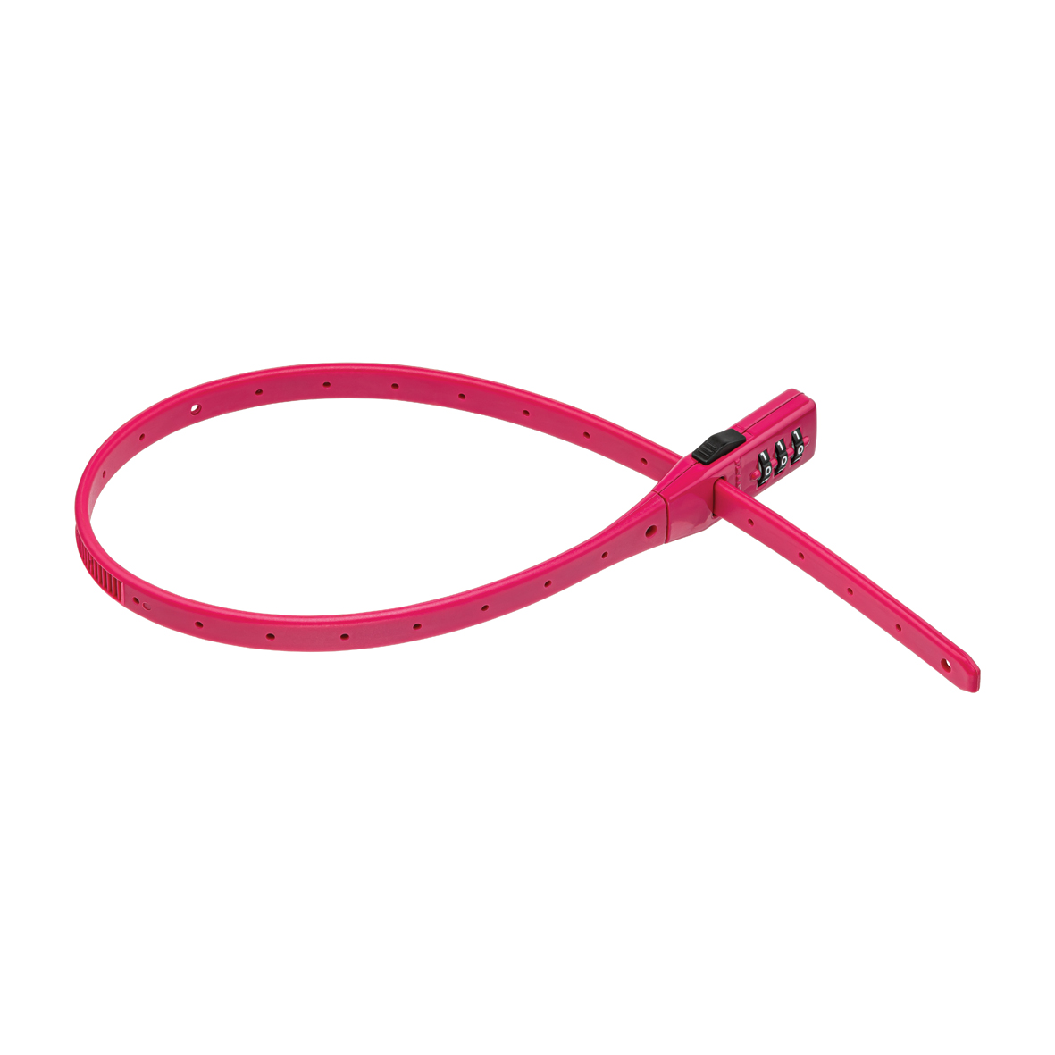 Sie können Ihren eigenen 3-stelligen Code einstellen. Das Kabel ist 53 cm lang und es ist ein kompaktes und leichtes Schloss. Es ist in 3 Farben erhältlich: Schwarz, Pink oder Blau.