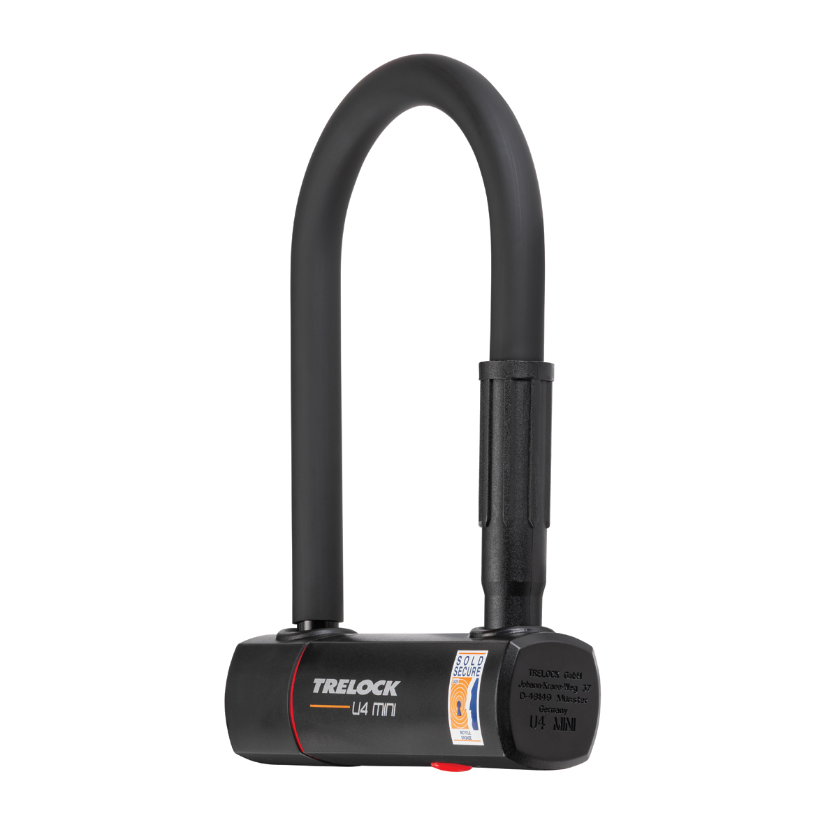 Das Einstiegs-Modell U4 der neuen TRELOCK Bügelschlossserie überzeugt, wie der Rest der Serie durch sein ansprechendes Produktdesign. Aber auch hier stimmen die inneren Werte. Ein 14 mm starker Bügel aus gehärtetem Stahl sowie ein sicherer Scheibenzylinder machen Fahrraddieben das Leben schwer. Die kompakte Größe der Mini-Variante lässt sich komfortabel transportieren.